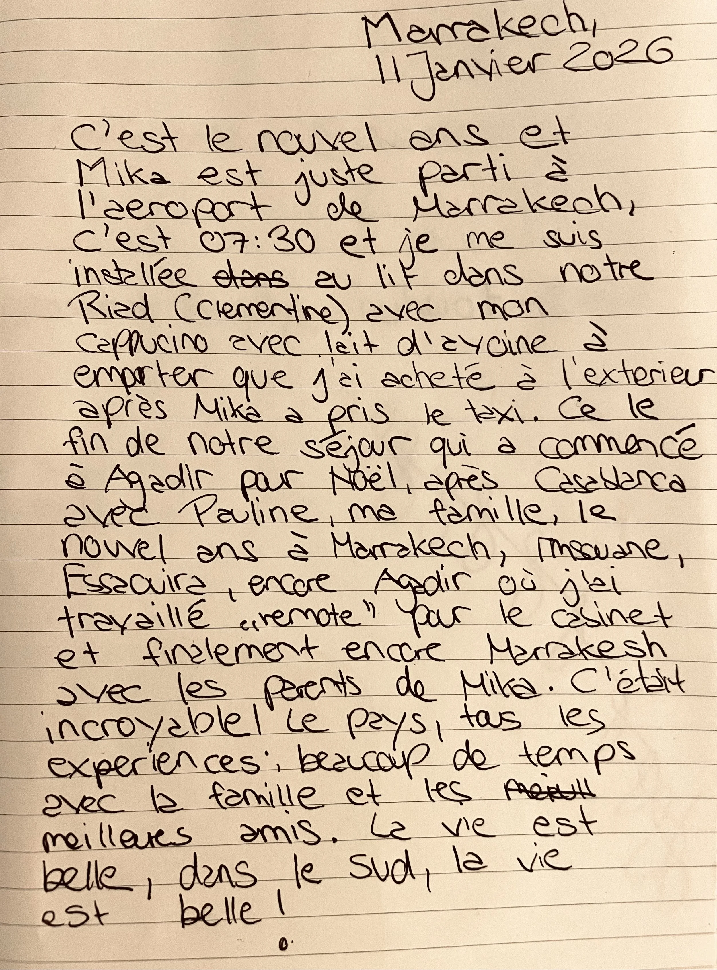It's the start of the new year and Mika has just left for Marrakech airport. It's 7.30am and I'm sitting on the bed in our riad (Clementine) with my takeaway oat milk cappuccino, which I bought outside after Mika took the taxi. This marks the end of our trip, which began in Agadir for Christmas, followed by Casablanca with Pauline, my family, New Year's Eve in Marrakech, Imsouane, Essaouira, Agadir again where I worked remotely for the firm, and finally Marrakech again with Mika's parents. It was incredible! The country, all the experiences, lots of time spent with family and best friends. Life is good in the south, life is good!