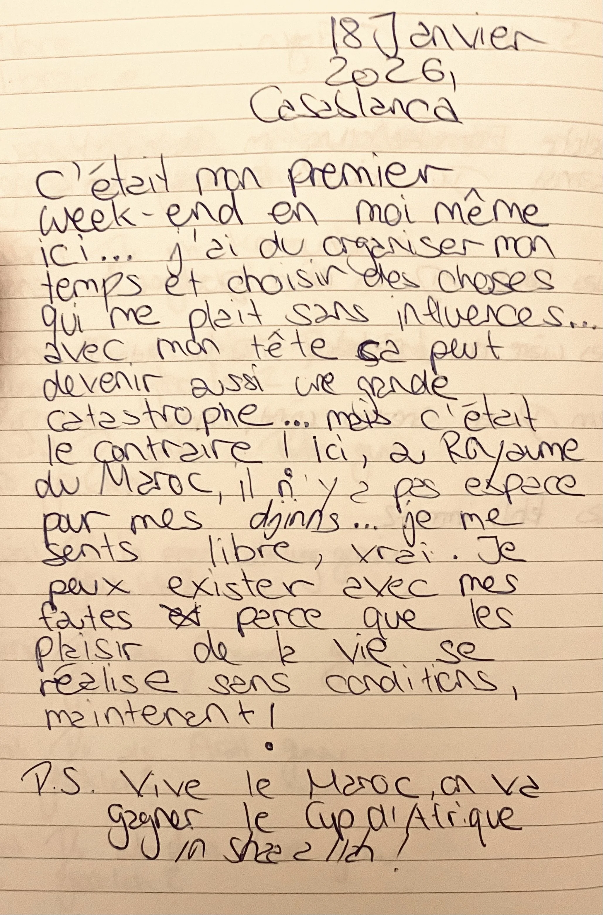 Aujourd’hui je commence à écrire mon petit Journal de Casablanca.